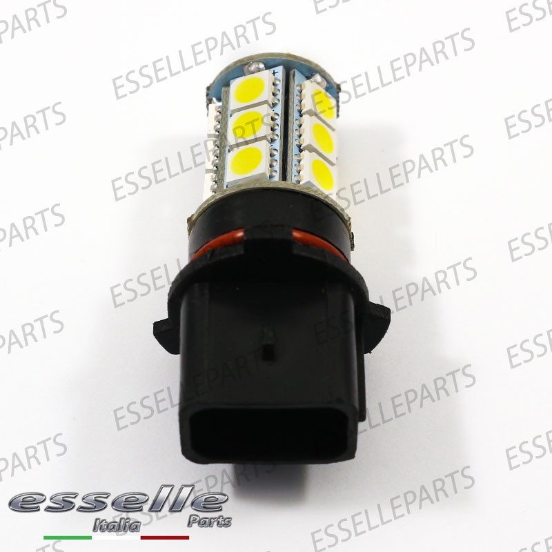 Lampada P13W 18 LED (non segna "errore" grazie ad una resistenza incorporata), i 18 LED SMD 5050 presenti nel bulbo permettono un' illuminazione laterale di 360° ed un' illuminazione frontale di 180°. Le caratteristiche principali di questa lampada a led sono: L'altissima luminosità (circa 6 volte superiore alle luci classiche), la lunga durata ed il bassissimo consumo energetico, la colorazione bianco ghiaccio.