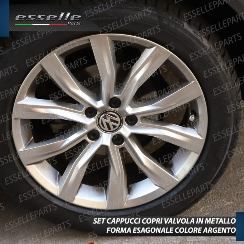 - 4 tappi copri valvola (2 per ruote anteriori e 2 per posteriori) in alluminio argentati