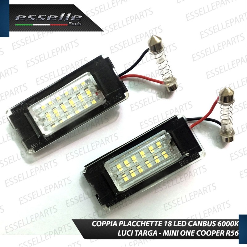 Coppia PLACCHETTE A LED per luci targa a 18 led SMD CANBUS luce ultrabianca 6000K (kelvin), non segnano "errore" grazie alla doppia resistenza in dotazione.
