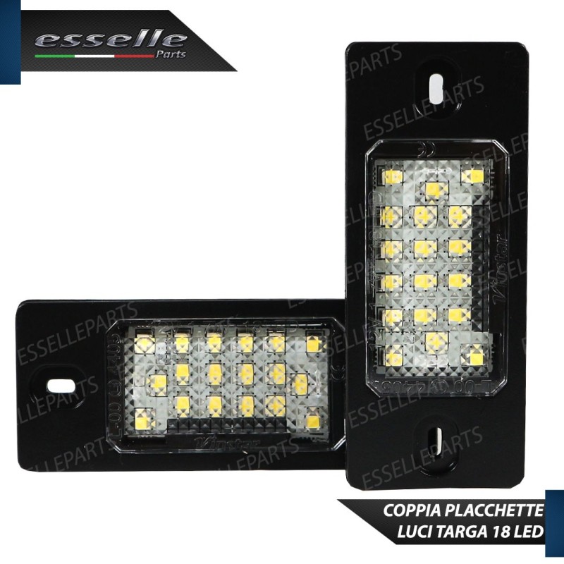 Coppia PLACCHETTE A LED per luci targa a 18 led SMD CANBUS luce ultrabianca 6000K (kelvin), non segnano "errore" grazie alla doppia resistenza in dotazione.