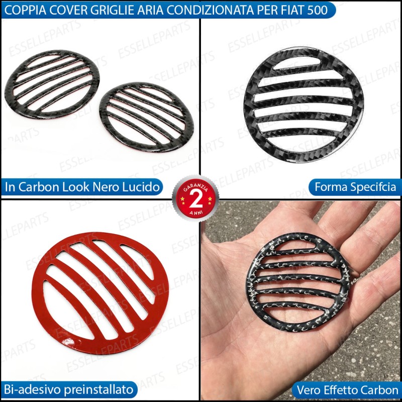 - 2 Cover per Griglie in Carbon Look Nero Lucido specifici per Fiat 500