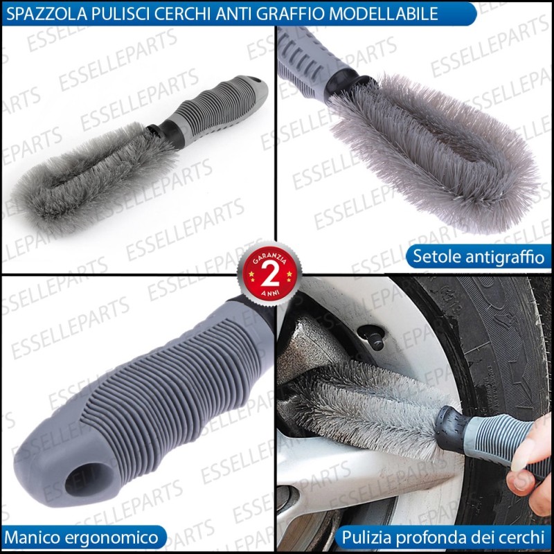 - 1 spazzola specifica per la pulizia dei cerchi antigraffio con manico ergonomico