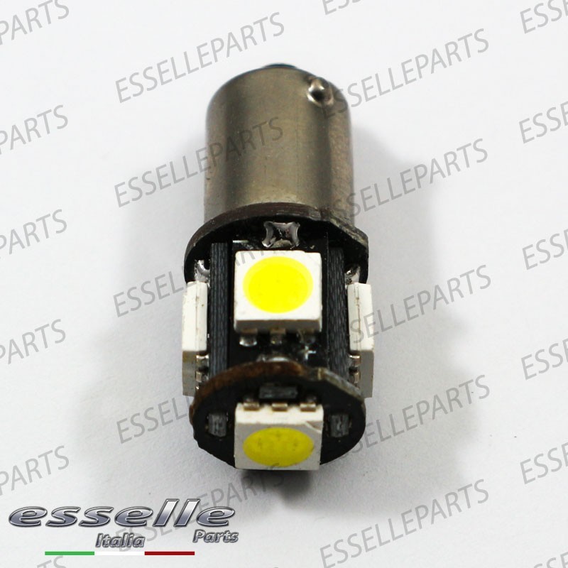 Lampada H6W 5 LED (non segna "errore" grazie ad una resistenza incorporata), i 5 LED SMD 5050 presenti nel bulbo permettono un' illuminazione laterale di 360° ed un' illuminazione frontale di 180°. Le caratteristiche principali di questa lampada a led sono: L'altissima luminosità (circa 6 volte superiore alle luci classiche), la lunga durata ed il bassissimo consumo energetico, la colorazione bianco ghiaccio.