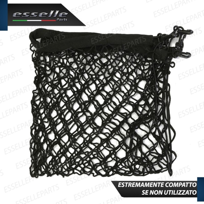 - 1 rete elastica nera 70 x 70 cm con fissaggio con clip ai ganci dell'auto