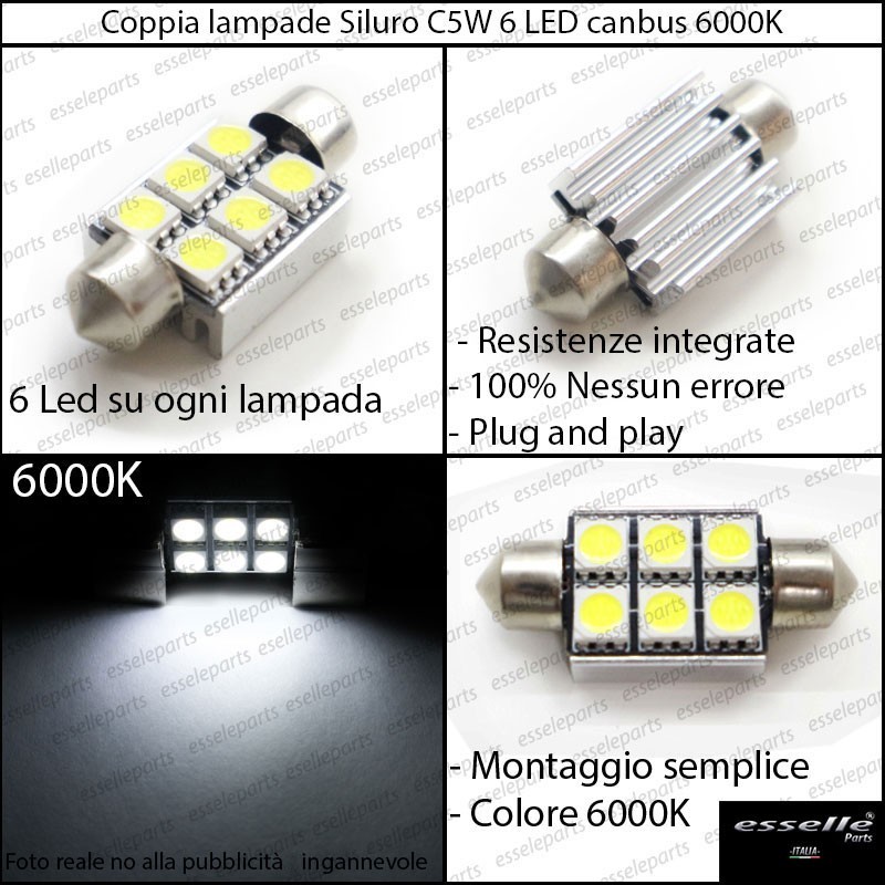 - 2 lampade Siluro C5W 6 LED CANBUS 6000K per le luci targa