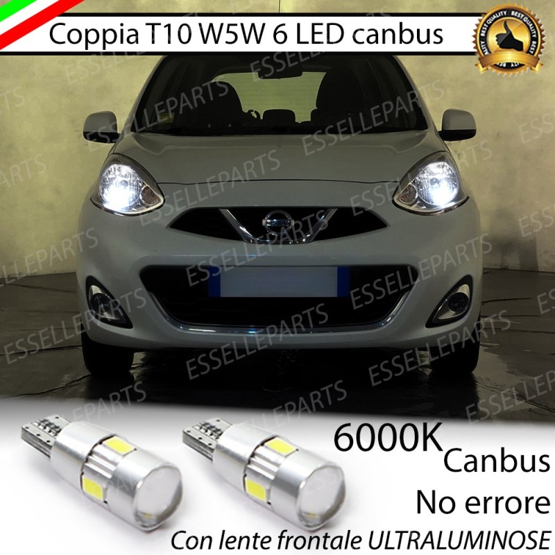 Coppia luci posizione T10 W5W 6 LED canbus 6000K Nissan Micra 4 Fino al 05/2013