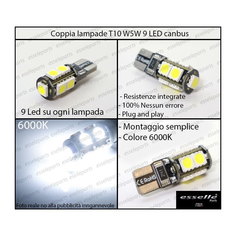 - 2 lampade T10 W5W 9 LED CANBUS 6000K per le luci targa