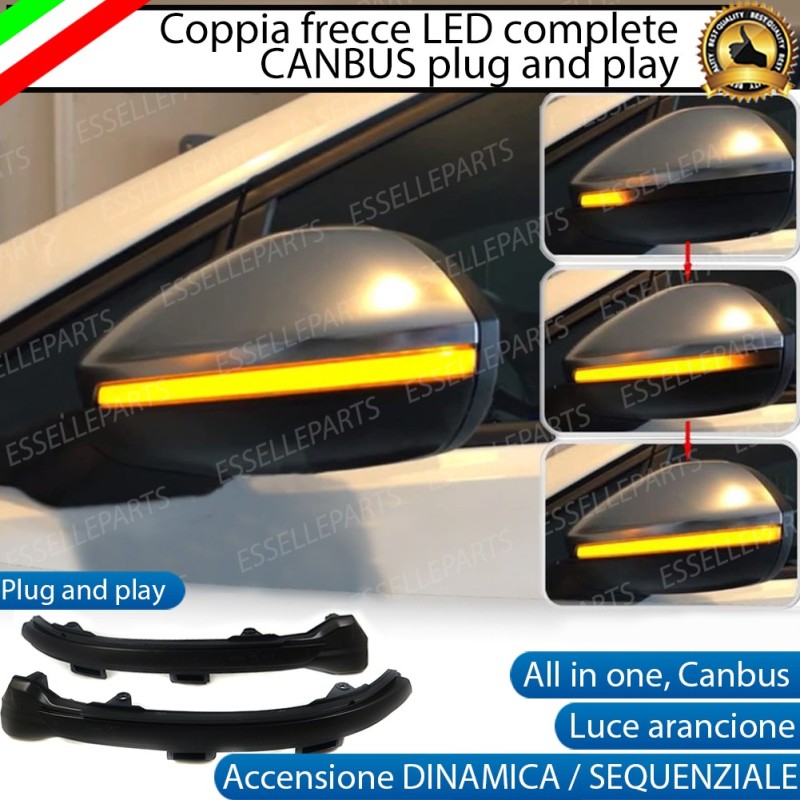 Coppia frecce complete A LED per frecce / indicatori di direzioni laterali degli specchietti retrovisori esterni a led CANBUS luce arancione ambra accensione dinamica / sequenziale / graduale, non segnano "errore" grazie alla doppia resistenza integrata. I LED presenti su ogni freccia garantiscono un illuminazione frontale ad alta intensità cambiando decisamente look alla propria automobile, questo grazie anche all'accensione dei led dinamica / sequenziale / graduale.