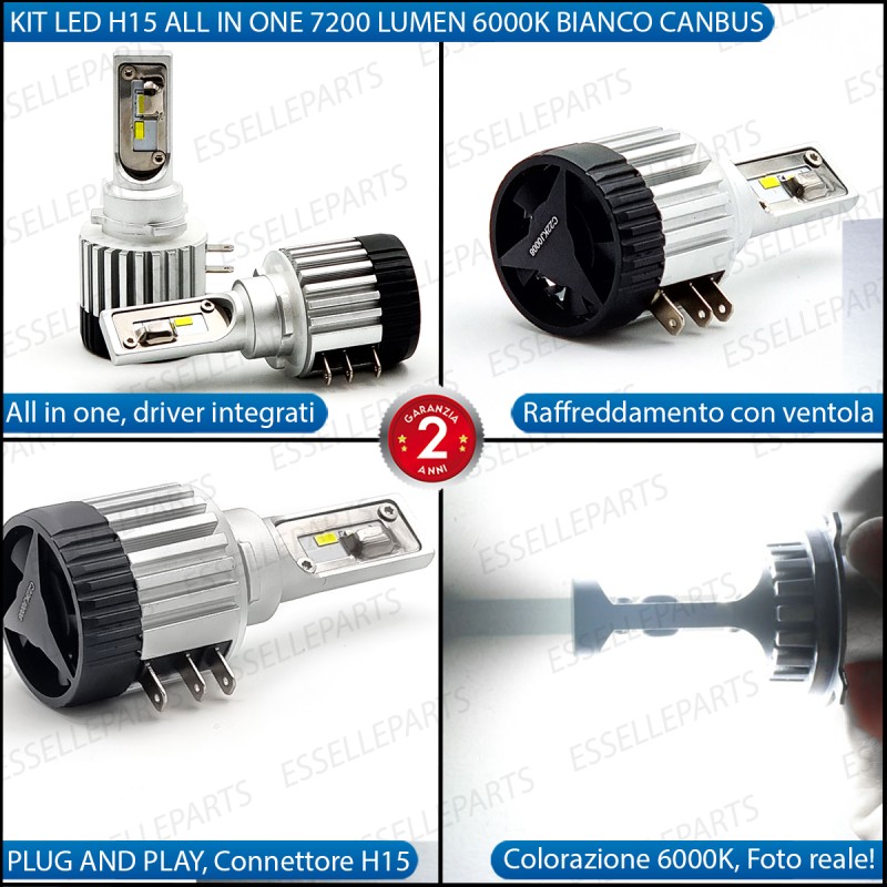 - 2 lampade H15 FULL LED 7200 LUMEN 6000K per uso abbaglianti / luci diurne