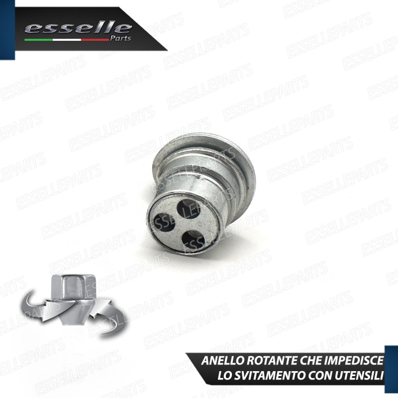 Il sistema ad anello rotante da un ulteriore protezione in quanto impedisce lo svitamento con utensili, per tanto per smontare il bullone anti furto si dovrà utilizzare necessariamente una delle due chiavi di sicurezza in dotazione.
